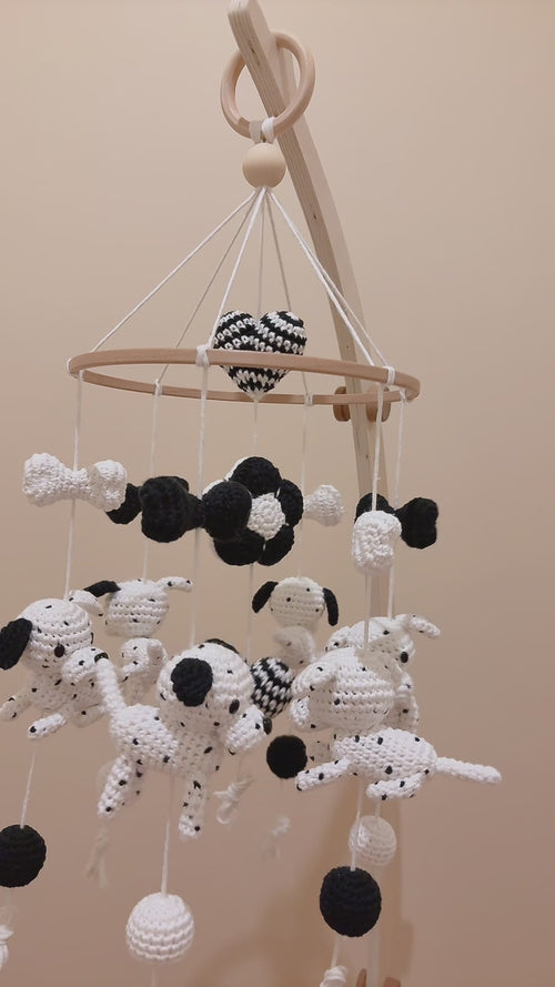 Mobile Bébé noir et blanc Évolutif "Les adorables Dalmatiens" - Crochet Fait Main
